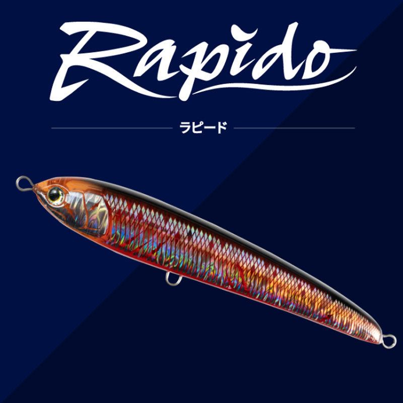 - シルエットがスリムで、ローリングをともなう、やや控えめなアクションのラピードは、スレた魚や活性の低い魚にも口を使わせることができる、食わせの能力に長けたペンシル。