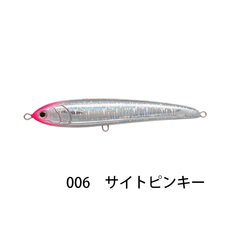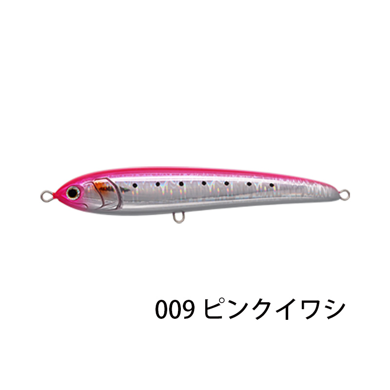- 空気抵抗の少ないスリムボディと、ボディ最後部に配置したウエイトにより、クラス最高の飛距離を叩き出す。足場の高い磯や堤防、また追い風であれば、さらなる飛距離が期待可能。
