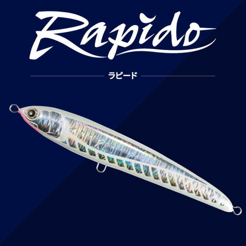 - シルエットがスリムで、ローリングをともなう、やや控えめなアクションのラピードは、スレた魚や活性の低い魚にも口を使わせることができる、食わせの能力に長けたペンシル。
